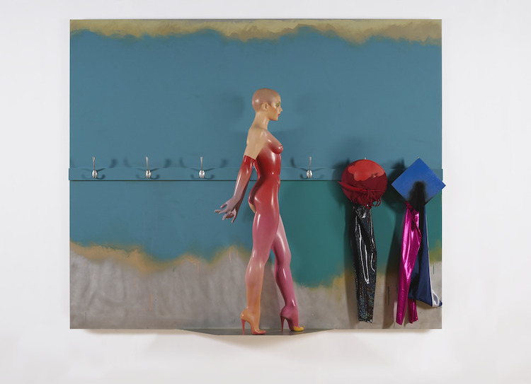 Se a catturare in un battito di ciglia sono gli incandescenti cromatismi e la morbida sensualità delle installazioni intitolate Backdrop e Changing Room, nonché quadri folgoranti come Crescendo e Semi Quiver che inscenano danzanti pas de deux fra i sessi; o ancora Ovation, che coglie l’attimo fuggente di un voyeuristico battimani, a farsi notare in tutto il suo peccaminoso appeal è Cover Story 2/4, la body sculpture con accessori in pelle e supporto in ottone che ha fasciato il corpo di Kate Moss, la modella britannica.