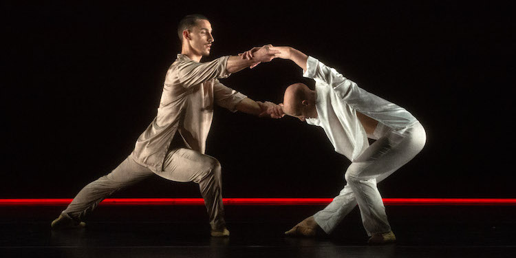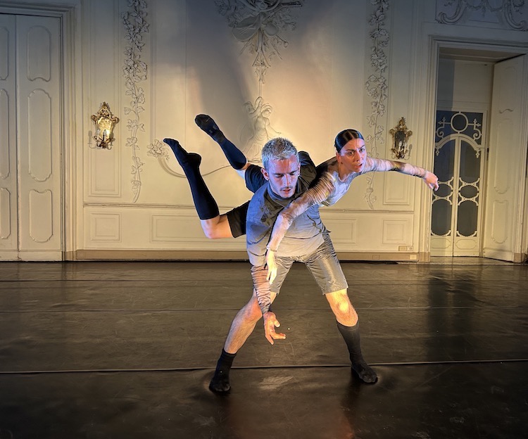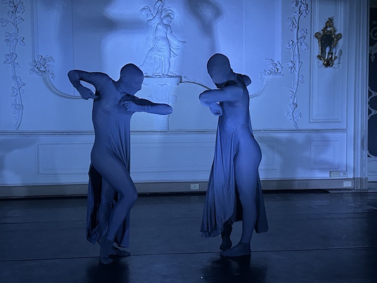 Il Nuovo Balletto di Toscana ha quindi presentato Dusk: coreografia, luci e costumi di Philippe Kratz. Matteo Capetola e Matilde Di Ciolo hanno danzato sulle musiche per organo della compositrice svedese Anna von Hausswolff, traendo spunto da Aspettando Godot di Samuel Beckett, l’allegorìa della precaria condizione dell’uomo contemporaneo il quale attende un avvenimento all’apparenza imminente, che nella realtà non accadrà mai e nulla si fa affinché possa realizzarsi. Fra parole inizialmente esternate fino al labiale, la danza si è concretizzata in una rappresentazione fonetica introducendo i coraggiosi e complicati passi in “slow-motion ”, fra luci e ombre, con i corpi a intersecarsi fino a intercettare posture sospese.