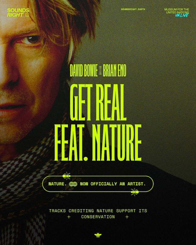 Tutto questo riallacciarmi al distopico Lp bowieano sottotitolato The Ritual Art-Murder of Baby Grace Blue: A non-linear Gothic Drama Hyper-Cycle è per comunicarvi che Get Real si è tramutato in Get Real Sounds Right Mix (Featuring NATURE), ossia nella versione remixata da Brian Eno per Sounds Right, il progetto musicale globale di Museum for the United Nations – UN Live che riconosce sulle piattaforme di streaming la NATURA come artista ufficiale allo scopo di raccogliere fondi per la sua salvaguardia.
