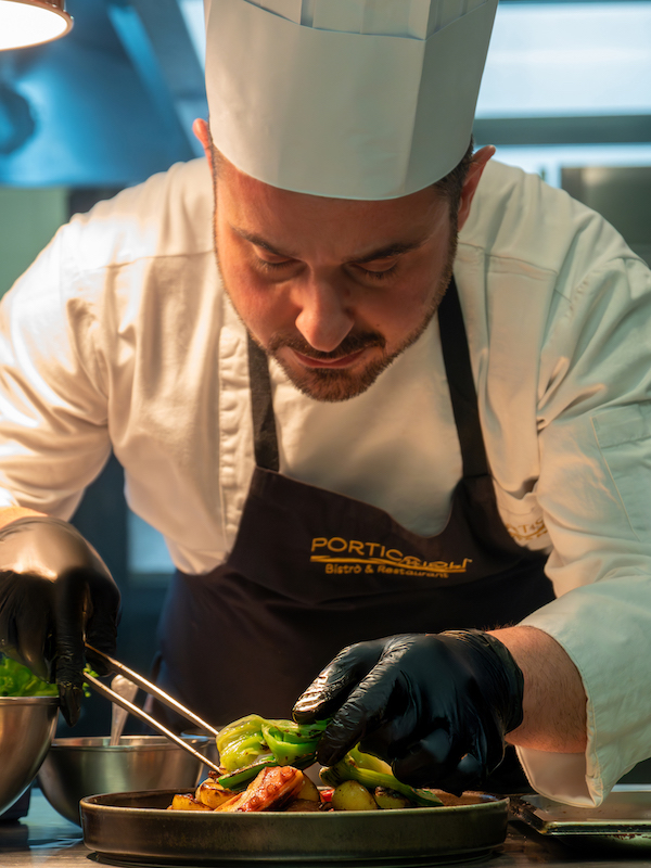 Ai fornelli, lo chef campano Ciro Tecchio porta 15 anni e più d’esperienza fra ristoranti stellati e realtà internazionali, una solida formazione nella cucina mediterranea e un approccio che punta sul gusto e sulla valorizzazione del lavoro di squadra. La sua è una cucina pulita, intensa, misurata: tecnica e creatività al servizio della materia prima.