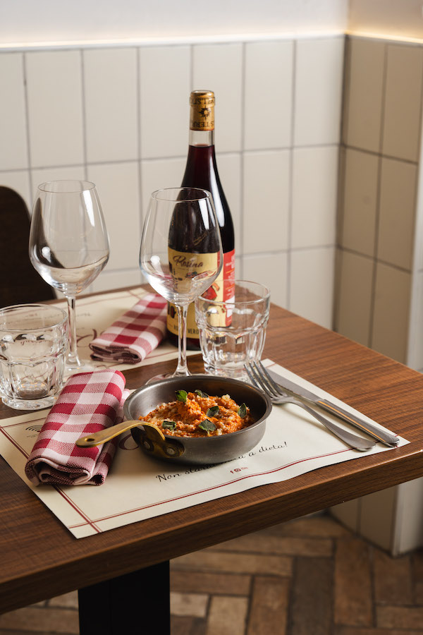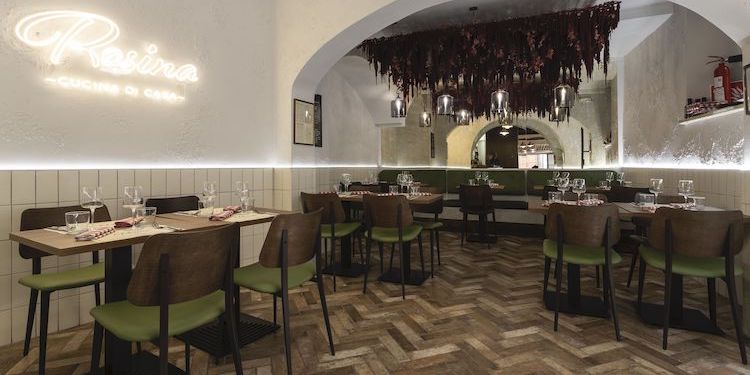 Il progetto nasce nell’aprile 2023 su idea di Giacomo Galliera, Simone Franzon e Francesco Costantini Melchiorri, già proprietari di Clorofilla, ai quali si aggiunge lo chef Gianmarco Iorio. Proprio dall’infanzia di quest’ultimo prende spunto Rosina, oltre che dal nome di una delle sue nonne: «La mia famiglia ha gestito per molti anni una trattoria in zona Porta Pia, dove sono cresciuto. Ma anche in casa l’atmosfera si è sempre collegata alla tavola con la mamma, le nonne e le zie abilissime ai fornelli». Un incontro ben preciso ha poi concretizzato di fatto il locale: quello del passaggio di testimone fra Sergio della Trattoria Da Sergio alle Grotte – dove oggi c’è Rosina – e Simone Franzon.