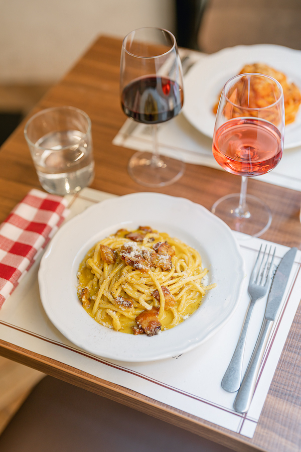 Fra i must vi consigliamo la polpetta di genovese servita con una fonduta di pecorino, dove le proporzioni di carne e cipolla vengono invertite rispetto alla tradizione; la pizzetta bianca con lingua di manzo, salsa verde e maionese alla senape; i ravioli di Rosina a base di ricotta e spinaci, sugo di datterini freschi, stracciatella e zest di limone; le polpette della nonna; il risotto ossobuco e zafferano, lombardo come l’orecchia d’elefante, ossia la carne battuta, panata con pan grattato ai grissini e fritta nel burro chiarificato. Di rigore la tradizione romana con la carbonara e l’amatriciana, il crostone con il baccalà, il pollo alla cacciatora, le fettine alla pizzaiola.