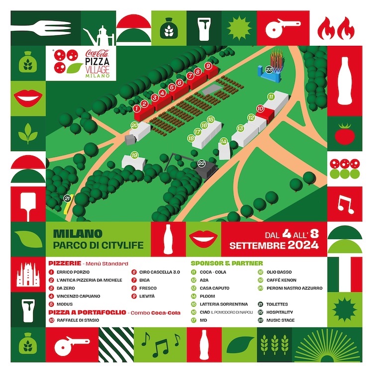 Sarà l’area del Parco di CityLife, a Milano, a ospitare il 1° evento del capoluogo lombardo dopo il rientro dalle vacanze. Da mercoledì 4 a domenica 8 settembre, dalle 18, si terrà infatti la seconda edizione del Coca-Cola Pizza Village. La manifestazione, organizzata da Oramata Grandi Eventi e AADV Entertainment, gode del patrocinio dei Ministeri della Cultura e del Turismo, nonché della media partnership di RAI Radiotelevisione Italiana. Gli oltre 9.000 mq. del polmone verde, a sud delle 3 Torri, è pronto ad accogliere i migliori Maestri Pizzaioli con le loro creazioni. Il format, come sempre, è caratterizzato da una ricca proposta d’intrattenimento e social engagement, live performance e talk dedicati al prodotto più iconico della cucina italiana.
