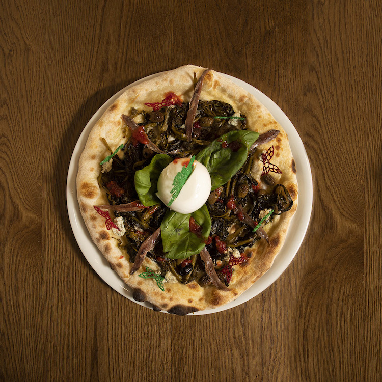 Appassionato d’arte brassicola, Simone ama a tal punto la birra da aver deciso di metterla nell’impasto delle sue pizze: «Arrivare alla quadra dell’impasto non è stato facile. Utilizzo un lievito madre disidratato che è un bi ceppo: lavora per fermentazione acetica e lattica. Il lievito della birra, invece, è un mono ceppo e all’inizio è stato complicatissimo trovare la birra adatta per la maturazione dell’impasto». Dopo vari tentativi ed errori, ecco la lievitazione iniziale di 24 ore a cui segue la stagliatura e un’ulteriore maturazione che non supera mai le 48 ore complessive. Il risultato? Una pizza digeribile, fragrante, che in cottura acquisisce una colorazione omogenea.