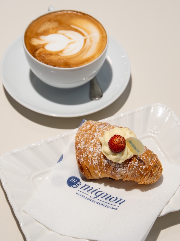 Su una superficie di circa 190 mq, con 25 posti a sedere e 1 dehor esterno, la colazione diventa il cuore dell’esperienza, con una proposta ricca e golosa pensata per accompagnare abitudini e gusti diversi. L’identità di Mignon si esprime soprattutto nella possibilità d’assaggiare più specialità tipicamente napoletane in un unico momento grazie al formato mignon, cifra distintiva del marchio. Dalle sfogliatelle (riccia e frolla) al babà, dalla pastiera alla caprese, fino alla zeppola alla crema e alla scenografica coda d’aragosta proposta in varie farciture, ogni prodotto vi invita alla scoperta.