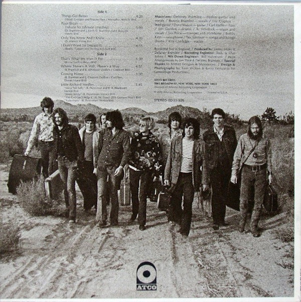 La loro produzione in studio (5 album in tutto) è quasi altrettanto encomiabile. Ma nulla ha la potenza e le virtù balsamiche di questo live implicitamente benedetto anche da Bob Dylan, che nelle session del singolo Watching The River Flow (1971) ospitò Radle e Russell (anche in veste di produttore): sono suoi i piedi che penzolano dal finestrino anteriore della vecchia Rolls-Royce Silver Dawn in sosta nel deserto ritratta in bianco e nero sulla copertina del disco, frutto di uno scatto effettuato durante il suo tour del 1996 da Barry Fienstein, il manager di Delaney & Bonnie.
