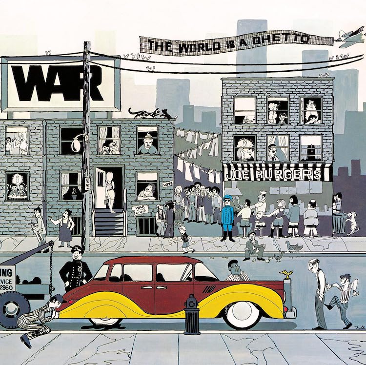 Messi insieme dal produttore discografico Jerry Goldstein (l’ex manager di Sly Stone che negli anni 60 aveva portato in classifica l’innocente pop/r&b di My Boyfriend’s Back delle Angels, di Hang On Sloopy dei McCoys e di I Want Candy dei Strangeloves) erano diventati famosi come gruppo di supporto di Eric Burdon, il “negro bianco ” già frontman degli Animals che in California aveva trovato una nuova anima musicale. Con lui e con il singolo Spill The Wine avevano fatto il botto e con il successivo 45 giri, Slipping Into Darkness, avevano fatto capire di poter sfornare successi anche senza il leone di Newcastle. Con The World Is A Ghetto, pubblicato nel novembre 1972, dimostrano invece che Marvin Gaye e Curtis Mayfield non erano gli unici a saper ritrarre con partecipazione, lirismo e vivida immaginazione la vita nei quartieri degradati delle metropoli americane.
